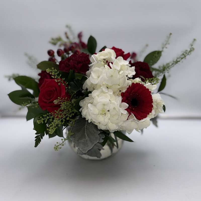 Price: $60.00January Floral Design Class Snow and Scarlet